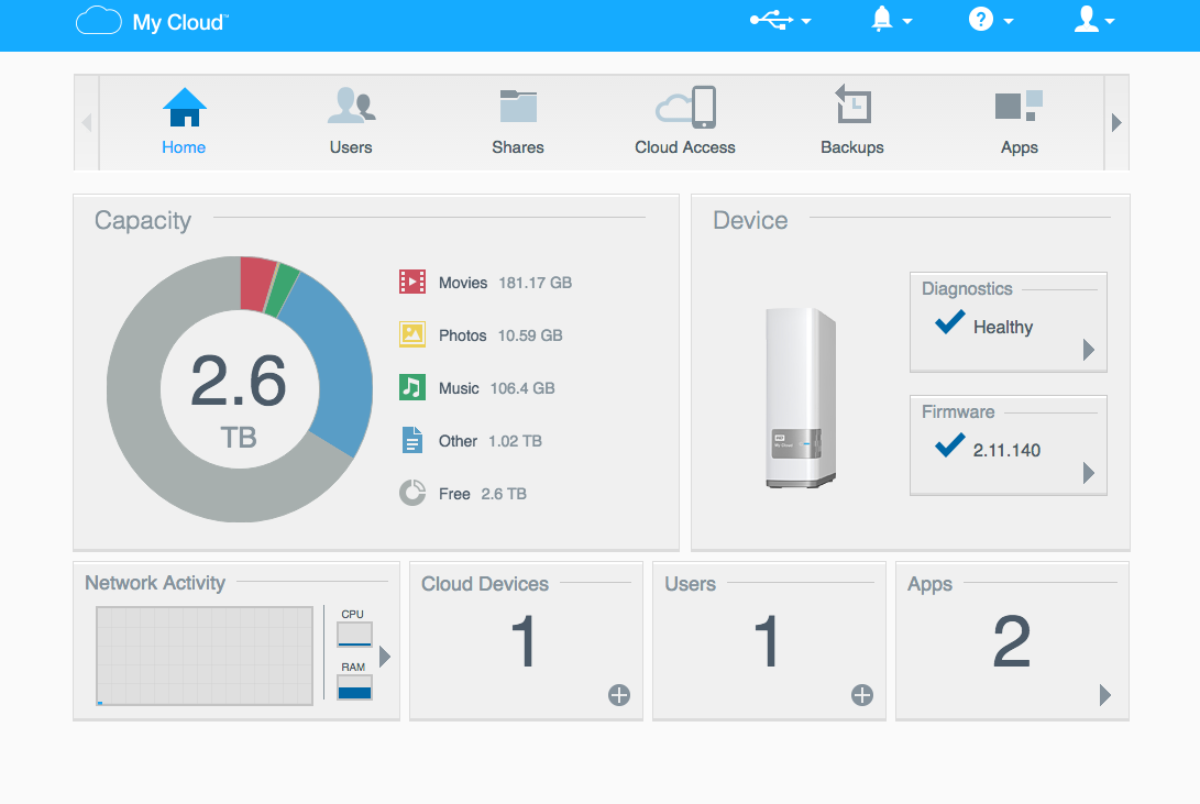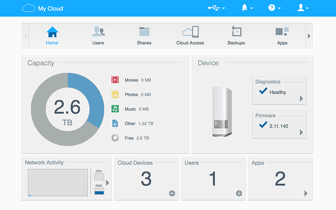 Have now set static ip up for it and it now let’s me in at wdmc.local, however before this it told me how the usage was split up, so much music, so much movie etc, now there are no music or movie etc, just 2.6Tb free space. have included two screen shots, B4 & after. No biggy I suppose if it gets the thing working.