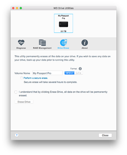 - i did install the “WD Drive Utilities” app version 2.0.2.18 (after recent update).